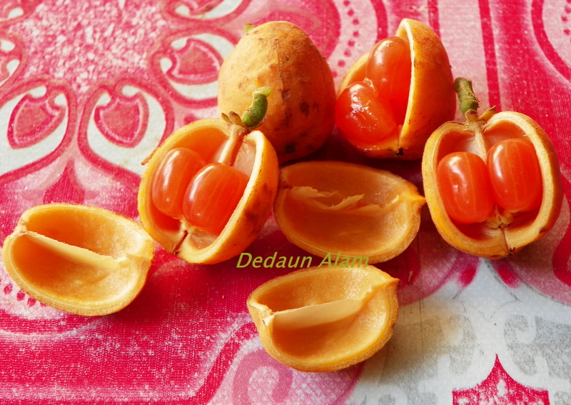 Isi buah jentik berwarna merah, biasanya setiap biji buah mengandungi tiga isi yang rasanya masam-masam manis.